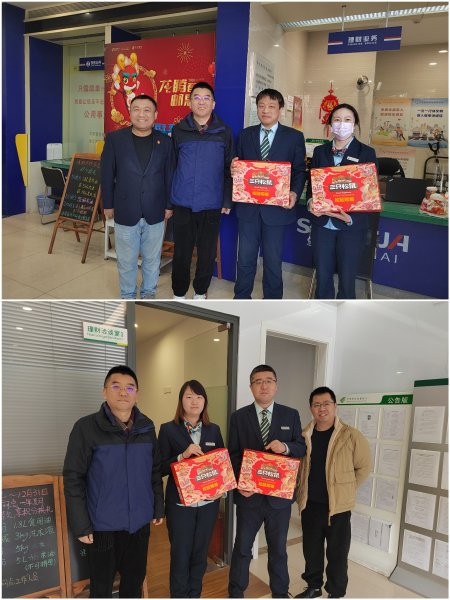 領導們來到上海體育場、東安路、樂山和漕河涇等金融網點,親切慰問員工,了解“開門紅”首日保險業務發展情況,并為他們送上誠摯的節日問候和慰問品。