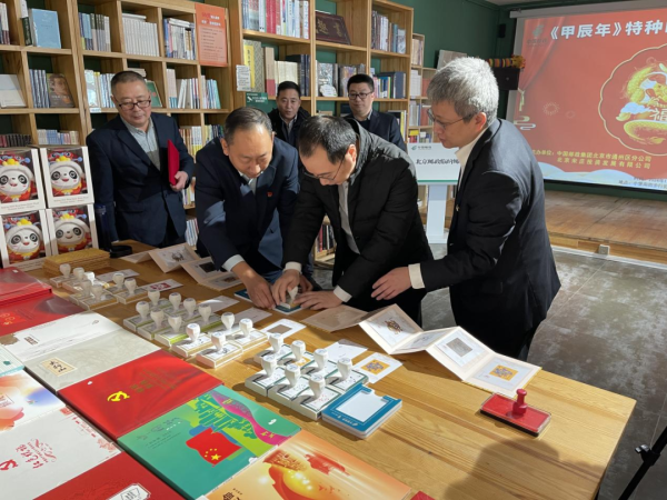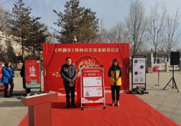 上午8:00,西城地安門郵政支局、牛街郵政支局和馬尾溝郵政支局等12家郵政支局準時開始銷售《甲辰年》生肖特種郵票。由北海公園管理處和西城郵政共同主辦、北海皇家郵驛承辦的《甲辰年》特種郵票首發(fā)儀式在北海公園內(nèi)的北海皇家郵驛隆重舉行。