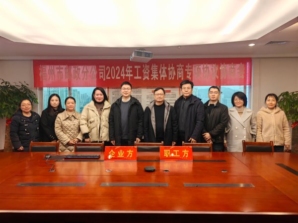 1月22日上午,市分公司召開2024年工資集體協商專項協議協商會。企業方代表及職工方代表參會。會上,與會人員對2024年《工資集體合同》(草案)進行了研究討論。企業方代表指出,《福州市郵政分公司工資集體協商專項協議》(草案)和上年相比,保留了已細化的條款,在協議(草案)中繼續加入職工工資(收入)年增幅等職工關注的條款。職工方代表表示,務必把握好2024年經營發展工作節奏,全體員工都要全力以赴為實現“穩企業發展,促員工增效”的共同目標而努力奮斗。最后,雙方本著互相尊重、公平公正、誠信務實、兼顧雙方權益的原則,就協議(草案)達成了一致意見,并將提交市分公司二屆九次職代會。(福建郵政工會)