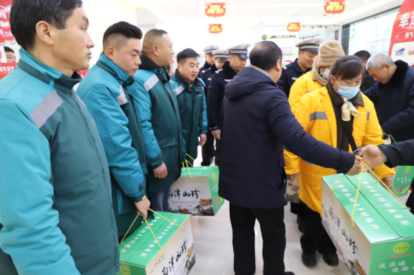 上午10時(shí)許,胡副主席一行來(lái)到襄陽(yáng)郵政分公司南漳城東支局郵愛驛站,觀看了郵愛驛站為戶外工作者準(zhǔn)備的開水、水果點(diǎn)心和臘八粥,并對(duì)攬投員進(jìn)行了慰問(wèn),祝大家新年快樂(lè)、拜早年。