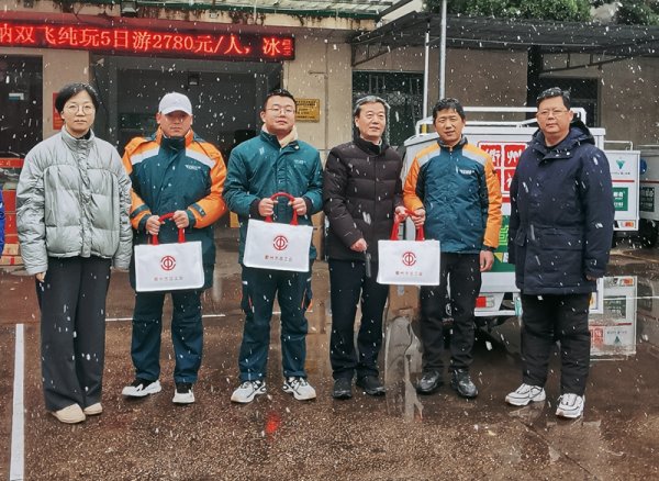 在春節到來之際,衢州市總工會揭政東、楊川丹副主席在衢州市郵政工會主席毛亨森的陪同下分別至城北投遞班、城北攬投部及快包部進行了慰問,給在戶外辛苦勞動的投遞員們送上了暖心禮包,并與他們親切交談,囑咐雨雪天氣要注意行車安全,注意保暖,使投遞員在這個寒冷的季節感受到來自工會組織的融融暖意。投遞員們紛紛表示今后會繼續努力工作,為社會多做貢獻,為企業爭光。(浙江郵政工會)
