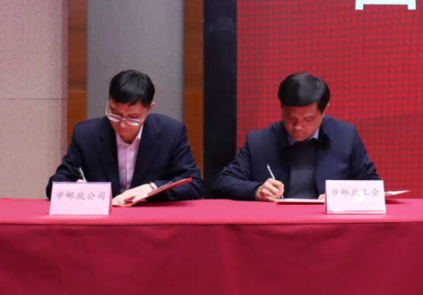 會議期間,贛州市分公司王健總經理與市郵政工會肖翔主席簽訂了《贛州市分公司2024年為員工辦實事承諾書》和《贛州市分公司工資集體協商專項協議》。(江西省郵政工會)