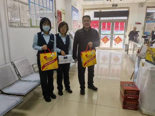 慰問組為各投遞部和金融網(wǎng)點送去方便面、水果、雞蛋、榨菜、飲料等慰問品。工會主席跟投遞員工交流時強調(diào)作為郵政人一定要有郵政擔(dān)當(dāng),切實盡到普遍服務(wù)義務(wù),在春節(jié)期間保質(zhì)保量完成投遞工作,彰顯郵政國家隊風(fēng)采,并叮囑員工作業(yè)時要注意安全,注意身體,按時吃飯,做好保暖工作。鼓勵金融網(wǎng)點的員工在2024年年初鉚足勁加油干,唯有搶先布局才能獲得更大的市場,大家表示干勁十足并且十分感謝領(lǐng)導(dǎo)的關(guān)懷。區(qū)分公司辦公室主任到患淋巴癌生活不能自理的困難職工家中進行慰問,為其送去雞蛋、牛奶等慰問品和慰問金,鼓勵他調(diào)整心態(tài),積極面對生活,早日康復(fù)和同事們繼續(xù)并肩作戰(zhàn)。