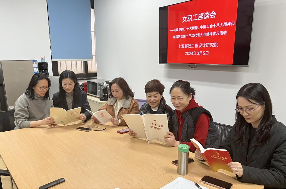 座談會上,院全體女職工認真學習了黨的二十大精神、中國工會十八大精神和中國婦女第十三次代表大會精神,紛紛表示將堅定不移聽黨話、跟黨走,充分發揮婦女“半邊天”作用,主動投身建設郵政高質量發展工作中,踔厲奮發,勇毅前行,爭先創優,努力為我院高質量發展和郵政國家隊建設貢獻巾幗力量。