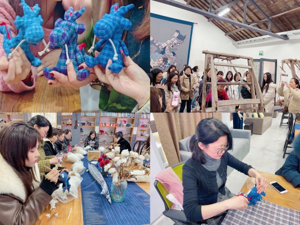 《江風(fēng)海韻》中所提,崇明土布紡織生產(chǎn)工藝到明朝中葉已十分繁盛,流傳已有五百多年的歷史,如今已被列為上海市非物質(zhì)文化遺產(chǎn)項(xiàng)目。走進(jìn)座落于惠民村中部的崇明土布創(chuàng)意活動(dòng)館,女職工們步入四四方方的鄉(xiāng)村庭院式展館中,于一匹匹色彩斑斕、寓意美好的布匹中,感知早期“崇明姑娘”的勤勞與智慧;于一件件樸實(shí)而靈巧的作品中,感觸土布手工作品略顯粗糙的天然肌理感與細(xì)密精致的針腳形成的獨(dú)特視覺(jué)沖擊,輔以精巧的配色和拼接手法后,作品承現(xiàn)出的一種古樸而靈秀的美。女職工們聆聽(tīng)女館長(zhǎng)講述創(chuàng)業(yè)的勵(lì)志故事、親身體驗(yàn)織布的樂(lè)趣、親自縫制龍年土布手工作品,感受著現(xiàn)代鄉(xiāng)村產(chǎn)業(yè)美學(xué)和非遺文化的魅力,同時(shí)也堅(jiān)定了女職工們昂揚(yáng)奮進(jìn)的信心。