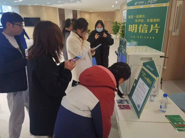 活動中,三八紅旗手、最美家庭、各行各業的杰出女性代表們紛紛駐足,從相機里選擇照片、講讀一段祝福語音、現場制作一枚個人專屬明信片,投進綠色郵箱,寄給自己的親朋好友。(浙江郵政工會)