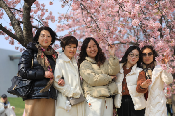 女神們漫步在風景秀麗的春景中,聞花香、聽鳥語,飽覽明媚春光,大家駐足欣賞、合影留念,在百草新生、百花齊放中放松心情、提振精神,促進同事間的美好情誼。