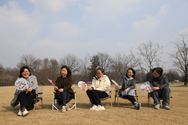 下午女神們圍坐在天幕下,一起手工制作團扇。團扇有“團圓、友善、吉祥如意”的美好寓意。心靈手巧的女神們充分發揮自己的想象力和創意,有條不紊的進行創作,大家時不時互相交流,現場氣氛十分活躍。