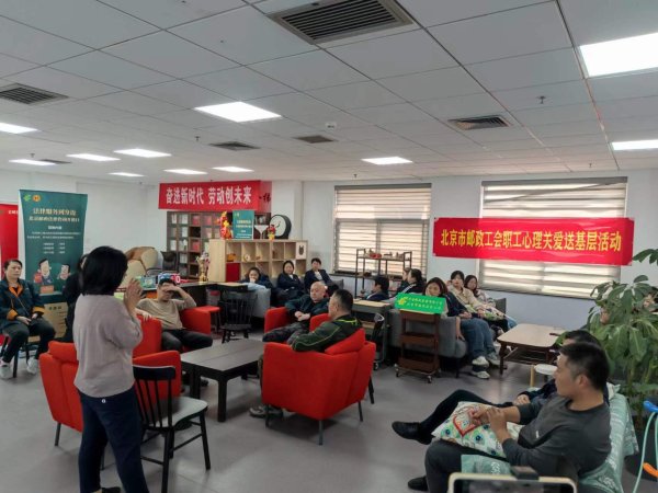 為了幫助廣大職工提升心理健康意識,積極挖掘自身潛能,提升工作幸福感受,海淀區分公司按照市分公司2024年郵政員工心理健康關愛送基層活動安排,于4月9日在職工之家承接市總工會“心理關愛勞動者,健康工作50年:遇見更好的自己”專題心理團體輔導活動,開展了“放松身心,助眠體驗”心理團體活動,以促進員工身心健康全面發展,活動共30名員工參加。