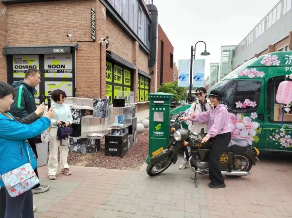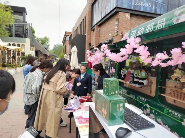 同時,第十四屆北京國際電影節于2024年4月18日至4月26日舉辦,電影節九大大板塊之一的“北京市場”落戶于郎園Statio,并設置專業區、大眾區和集市區。朝陽區分公司通過流動郵局的形式入駐服務“北京市場”,為電影節提供服務。利用具有春季特色的流動郵車、個性化明信片打印機、老式郵筒和郵政投遞摩托車等元素,打造了一個獨具特色的“流動郵局”。 這個流動郵局不僅提供了各種電影題材的郵品和文創產品,還展示了中國郵政深厚的文化和歷史底蘊。