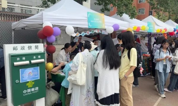 在熱鬧的人群中,學院路郵政支局的服務專區顯得格外醒目。郵政工作人員微笑著迎接每一位前來咨詢和辦理業務的市民和學生。現場制作的彩色郵資機明信片成為了文化節的獨特紀念品,人們紛紛排隊等待,希望將自己的祝福和問候通過郵政傳遞給遠方的親朋好友。