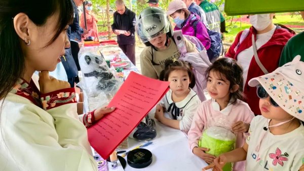 西城郵政以“展現詩意西城”為主題,在文創(chuàng)產品開發(fā)和互動游戲環(huán)節(jié)下足功夫,推出以丁香花和主題建筑為主要元素的異形明信片,深受年輕人喜愛。許愿打卡墻成為游客駐足留念的打卡點,詩詞接龍活動則為小朋友們提供了一個游戲、展示的舞臺。