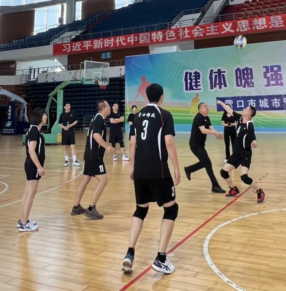 5月17日下午,營口郵政工會氣排球興趣小組與移動公司、人民銀行、工商銀行工會在奧體中心開展氣排球聯誼賽活動。