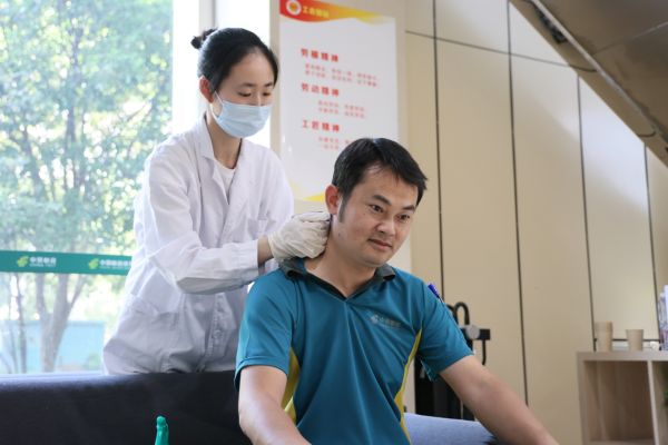 活動現場,具有豐富臨床經驗和精湛醫術的醫護人員仔細查看每位勞動者的身體健康狀況,詳細詢問過往病史,耐心解答各類健康咨詢問題,解讀體檢報告和既往病歷,逐一提供測量血壓血糖、中醫四診、中醫理療、健康問診等等全面服務。同時,結合職業特性、年齡階段特點及常見疾病等,講解預防和保健常識,針對頸肩腰腿關節、失眠、“三高”等常見慢性病的防治,提出了專業的診療建議和科學的飲食、運動、用藥指導,鼓勵基層勞動者們培養健康的生活方式,以免費“零距離”的公益醫療服務,傳遞了關愛與溫暖。“平時工作比較忙,我有些腰酸背痛的老毛病,也沒太多機會到醫院求醫問診,這次活動把健康服務送到離我們最近的郵政網點,特別的貼心。”負責水果湖步行街附近保潔衛生的“城市美容師”——48歲的女環衛工人陳文進現場體驗了“艾灸”療法后,為此次活動“點贊”。