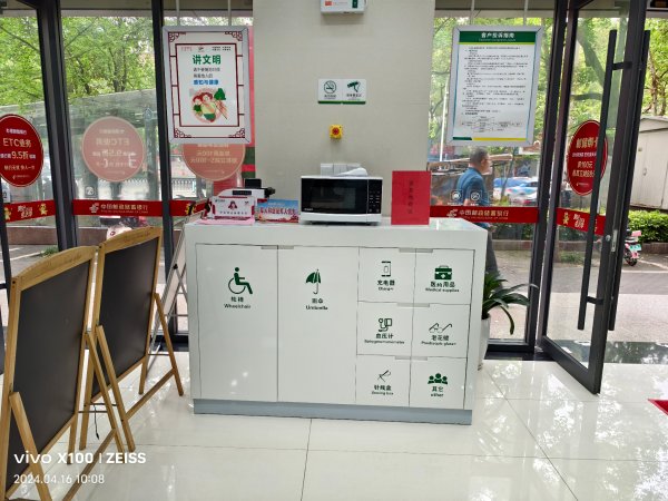除此之外,驛站內還設置了閱覽區、就餐休息區等功能區,配備了微波爐、冰箱等設施,準備了雨傘、血壓計、老花鏡甚至還有輪椅,考慮到了多樣的細節和需求,只為給每一位有需要的群眾提供便捷、周到的服務,把溫暖送到老百姓的心坎里。