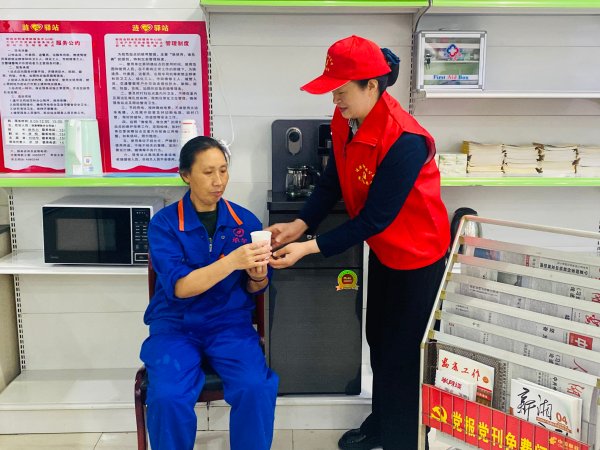 夏日送清涼。酷暑炎炎,高溫難耐的天氣,會有綠豆湯或者八寶粥配送至驛站。志愿者會為來營業廳暫歇的戶外勞動者或群眾奉上一碗清涼解暑的綠豆湯、清甜可口的八寶粥,讓戶外工作者們可以在郵政網點享受片刻清涼與寧靜。