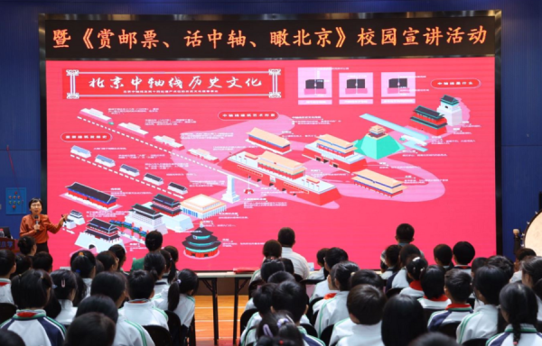 近日,海淀區分公司攜手北外附小開展閱讀節暨《賞郵票 話中軸 瞰北京》校園宣講活動,特邀學生代表及家長代表百余人參加現場活動,并同步進行直播。來自培訓中心的么春元老師為大家帶來精彩的《賞郵票 話中軸 瞰北京》講座,透過郵票和明信片這一獨特視角,深入解析北京中軸線的歷史和文化內涵,并從“民族文化之軸”“古都歷史之軸”“都城空間之軸”三個維度,詳細闡述北京都城的歷史演變。充實的內容、生動的講座風格贏得了學校師生及家長的認可與喜愛。此次活動的圓滿舉辦進一步展示了郵政的服務品牌形象,為今后的合作奠定良好基礎。
