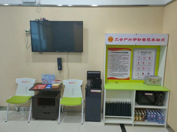 本次先行對45個站點增設(shè)配備了物品收納柜、休息椅、微波爐、雨傘、礦泉水,使站點硬件服務(wù)設(shè)施更加齊全、服務(wù)更便捷,為戶外勞動者提供更安心、更暖心的服務(wù)。目前,功能區(qū)內(nèi)配備有空調(diào)、休息桌椅、物品收納柜、飲水機、微波爐、充電器、置物柜、醫(yī)藥箱、礦泉水、工會報刊書籍及工會宣傳冊等,切切實實為戶外勞動者提供冷可取暖、熱可納涼、渴可喝水、累可歇腳、傷可用藥、閑可閱讀的細(xì)心周到服務(wù)。