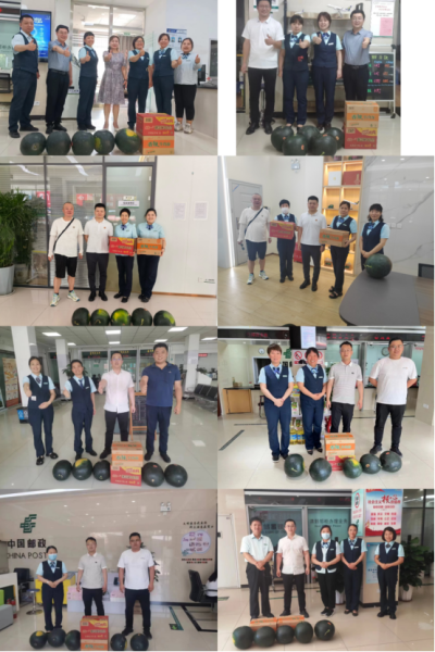 盛夏來臨,氣溫持續攀高。面對突來的高溫,平頂山市分公司高度重視,總經理親自部署夏日“送清涼”慰問工作,工會主席第一時間安排各單位工會組成工作小組,制定防暑降溫、安全生產預案。平頂山市郵政工會迅速采購了第一批防暑降溫物品,第一時間分發給各單位工會。東區、西區分公司工會在6月11日,12日分別對7個攬投部、8個郵政支局進行了慰問,向高溫下依然奮戰在一線的同志們送去了西瓜、礦泉水、去火茶和綠豆。炎炎夏日送清涼,濃濃關愛沁人心,6月13日李志斌總經理帶隊、王勇主席陪同前往市網運中心、攬投部進行了親切慰問,為一線職工送去防暑降溫物品。李總強調,在高溫天氣下,人員的生命安全高于一切,一定要在重要環節采取應急措施,合理進行生產作業組織,時刻保持現場通風,要24小時做到有人值守,特別是卸車環節的生產人員,要重點進行防高溫措施的落實。