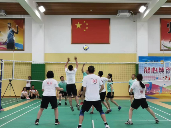 8點30分,舉行開幕式,首先,唱國歌,雄壯豪邁的歌聲在場館回蕩,令人振奮,隨后,副總經理、工會主席周靜致開幕辭,市公司黨委書記、總經理謝奎宣布比賽開始并開球。比賽采用小組單循環比賽方式,五人制,其中女隊員2名。參賽隊員訓練有素,配合默契,相互鼓勵,一次次精彩攔網,絕殺扣球,巧妙傳球,引起觀眾陣陣叫好。觀眾熱烈的掌聲、啦啦隊高昴的吶喊聲、裁判員響亮的吹哨聲匯成一片。場上氣氛緊張而激烈。