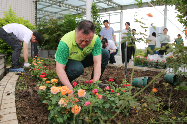 活動當天,陽光明媚,微風拂面,萬物煥發出勃勃生機,職工們積極投入到了園藝種植的實踐中。挖坑、培土、澆水……職工們有條不紊地種下各類花卉和蔬果,通過互相交流學習獲得種植經驗的同時,也用心感受著植物為生活帶來的無盡喜悅與期待。