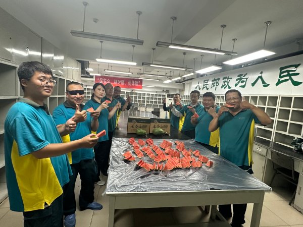 區分公司工會先后購買了300斤綠豆、150斤冰糖、3100箱飲用水、410箱西瓜等防暑降溫物資配發到投遞部、營投部等一線崗位人員。各部門工會在高溫酷暑來臨時及時組織熬制綠豆湯,提供給職工用以防暑降溫。外勤投遞員們表示“近日來的連續高溫,投送郵件偶爾會感到暈沉沉的,這些清涼物資送的很及時,讓我們在烈日下工作身體感受到了一份涼意,心里感受到了企業的關愛”。