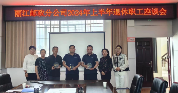 近日,麗江市郵政工會舉辦了2024年上半年退休職工座談會。市郵政工會、人力資源部、到齡退休職工所在部門領導及麗江主城區4名到齡退休職工參加了座談會。