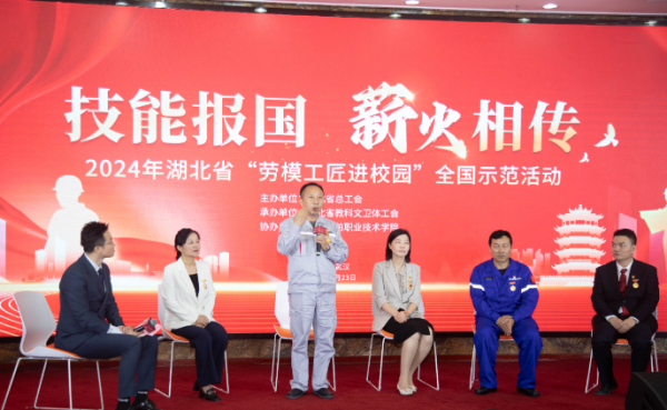本場宣講活動以“技能報國、薪火相傳”為主題,劉杰與全國勞動模范周怡、王建清,湖北省“十佳師德標兵”汪行,大國工匠周永和共5位勞模工匠一起,被授予兼職導師聘書,與來自武漢船舶職業技術學院、長江工程職業技術學院、武漢鐵路職業技術學院的300名師生代表共聚一堂,分享奮斗故事、暢談勞動心聲,全省各類職業院校師生同步收看直播。