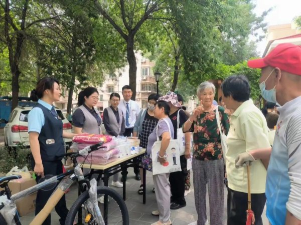 啟動儀式后,中國郵政儲蓄銀行北京豐臺區周莊營業所連同五家在望園社區轄區內銀行分工協作,正式開始“營業”,業務包含廢舊物品回收置換、廢舊自行車置換、文明養犬宣傳等。