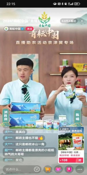“郵政的主播真有活力” “郵政主播都是漂亮的小姐姐、 帥氣的大哥哥” “郵政的工作服真美” 日前,來自北京郵政的兩位主播 走進團中央“青耘中國”的直播間與來自河北、天津等地的青年主播一起,進行了“青耘中國” 京津冀助農專場直播。
