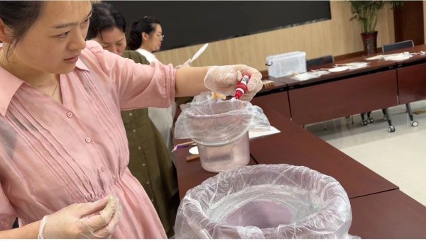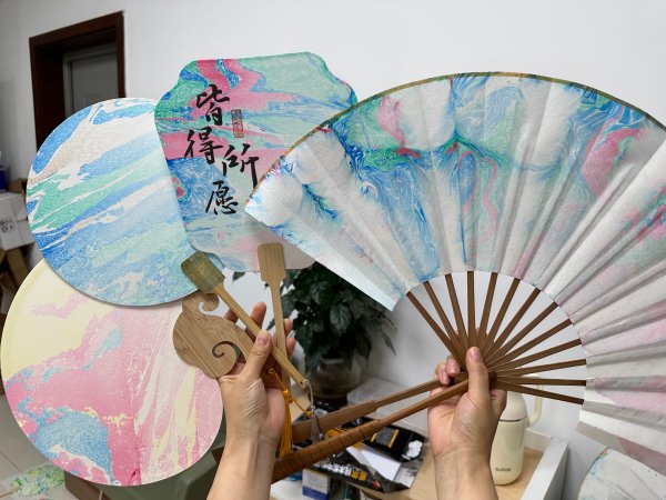 員工們根椐自已的喜好選擇紙?zhí)テ崞鳎诶蠋煹闹笇?dǎo)下認(rèn)真調(diào)制墨水,再把紙?zhí)テ崞髀湃胨爸校云釣楣P,以水為墨,在員工們期待中扇畫(huà)出現(xiàn)啦,哇噻,清水芙蓉、人間清醒、皆得所愿、清歡等一個(gè)個(gè)扇畫(huà)展現(xiàn)了。員工們用紙?zhí)テ崞鳎ㄟ^(guò)漂漆工藝,以手造物,發(fā)物抵心制作的非遺漆扇禮物非常珍貴,紛紛表示將是自已的珍藏,員工們?cè)煳锏捏@喜無(wú)法言表。