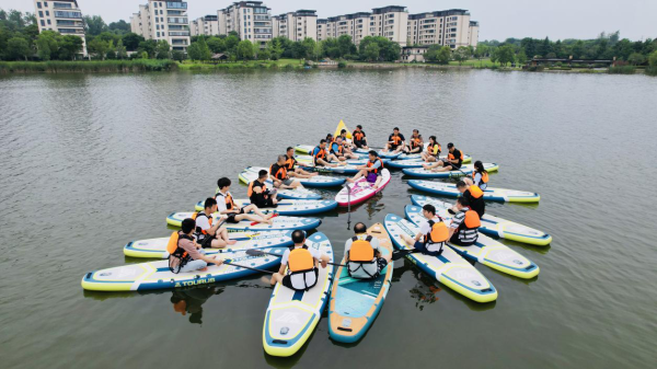 為放松解壓,舒緩身心,6月26日安徽郵政省信息技術中心工會組織大家來到長豐鷺上湖戶外運動基地開展水上槳板運動。