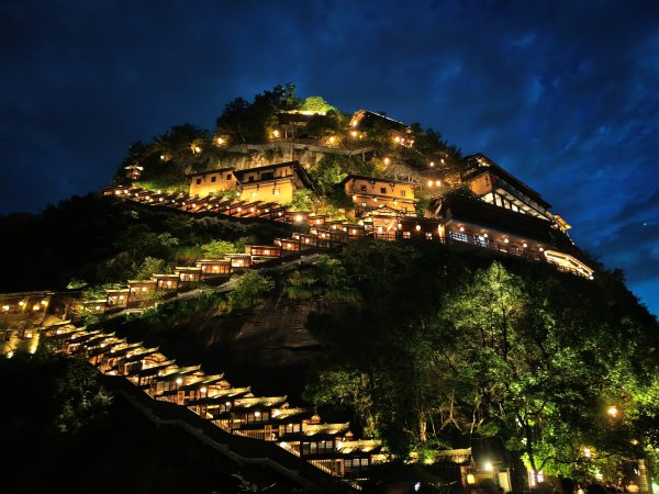 大家從入口進入后,沿途可以看到卵石飛瀑、清幽峽谷。瀑布水聲嘩嘩,從山崖高處傾瀉而下,在山體斜坡上形成一道道自然的水幕。山谷間,清風陣陣,溪水潺潺。人在望仙谷,真是心曠神怡,心情歡暢。望仙谷里的小鎮,極具贛東北民居特色的大土墻、木格窗房屋的建筑風格引人注目,令人流連忘返。華燈初上,望仙谷的夜景更是令人陶醉,星星點點的燈光與山間霧氣相互響應,仿佛讓人置身仙境中。