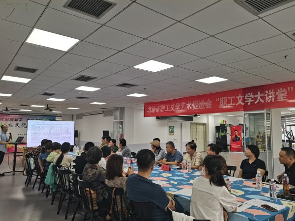 活動(dòng)中,北京晚報(bào)五色土編輯部主任周家望、北京文化館研究員杜染兩位專家就詩(shī)歌、楹聯(lián)、散文等主要體裁的創(chuàng)作方法與技巧,為大家進(jìn)行了精彩授課及指導(dǎo)。隨后文促會(huì)宋艾君會(huì)長(zhǎng),介紹了文促會(huì)基本情況及征文活動(dòng),最后答疑環(huán)節(jié)參加人員就“職工文學(xué)創(chuàng)作途徑、方法”、“創(chuàng)作素材亮點(diǎn)”及“文學(xué)藝術(shù)與生活”等問(wèn)題進(jìn)行了提問(wèn)和座談研討。參與活動(dòng)的職工表示,此次活動(dòng)再次點(diǎn)燃了自身的創(chuàng)作熱情,激發(fā)了創(chuàng)作靈感。
