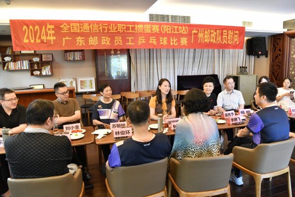 6月27日上午,慰問活動在廣州市分公司青年活動室進行。省郵政工會基層工作部副部長謝綠媛,廣州市分公司副總經理、工會主席莫雋予,工會副主席楊明出席活動。8名乒乓球參賽員工與4名摜蛋參賽員工依次發言,暢談參賽感悟。