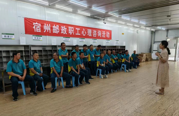 7月12日下午,宿州郵政工會(huì)在北區(qū)營業(yè)部組織開展職工心理咨詢活動(dòng),20余名一線攬投人員代表參加了本次活動(dòng)。活動(dòng)誠邀國家心理學(xué)碩士、二級(jí)心理咨詢師張老師走進(jìn)郵政基層,與職工開展面對(duì)面心理健康沙龍活動(dòng)。活動(dòng)現(xiàn)場,老師詳細(xì)了解攬投員們當(dāng)前壓力和情緒現(xiàn)狀,通過情景體驗(yàn)、現(xiàn)場答疑、個(gè)人咨詢等多種方式,深入淺出地為職工講解了心理保健的重要意義,就大家關(guān)心的如何緩減工作壓力,提升睡眠質(zhì)量等問題進(jìn)行了全面解答。活動(dòng)受到基層員工的熱烈歡迎,大家紛紛表示受益匪淺,老師傳授的日常解壓、抗壓、調(diào)節(jié)心理狀態(tài)的具體方法非常實(shí)用,心里“輕快”多了。