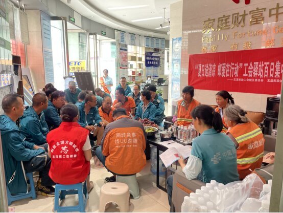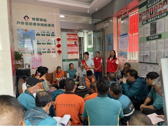 活動當天,志愿者們一大早就忙碌起來,準備了清甜可口的水果、礦泉水,為戶外勞動者們帶來了夏日的絲絲涼意。頂烈日、冒酷暑、戰高溫……城市建設離不開戶外勞動者的汗水與付出,工會驛站的工作人員貼心叮囑大家在炎夏日要注意防暑降溫、安全出行、文明出行,熱了、渴了、累了隨時來驛站歇歇腳。這些清涼飲品為他們帶來了身體上的舒適,聲聲叮囑更傳遞了郵政對他們的關心與敬意。