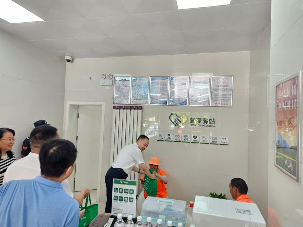 靳海斌對郵愛驛站的建設和管理工作提出贊揚。向現場的職工和戶外勞動者在高溫天氣下的堅守表示敬意,叮囑大家做好防暑降溫,注意勞逸結合。