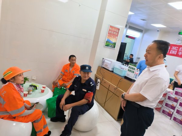 劉磊主席詳細詢問了業務發展情況網運操作流程,肯定了錦業路攬投部職工小家建設,希望攬投部繼續做好職工小家的管理工作,做好攬投員防暑降溫和后勤工作,全面促進經營生產高質量發展。