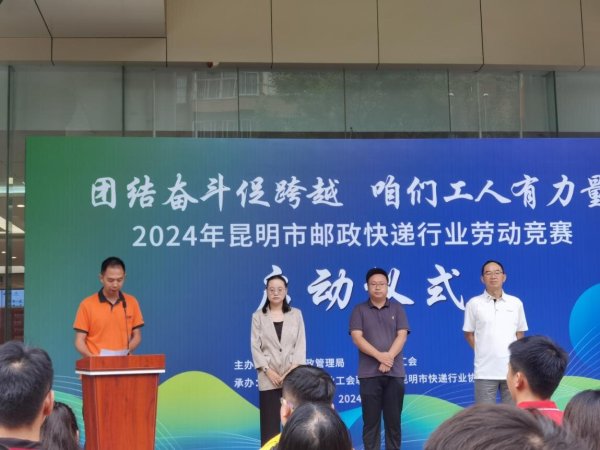 8月7日,由昆明市總工會、昆明市快遞行業工會聯合會舉辦的“團結奮斗促跨越 咱們工人有力量”2024年昆明市快遞行業勞動競賽啟動儀式在昆明舉行,昆明市9家快遞企業參加,昆明郵政組織全市快遞員參加此次勞動競賽。