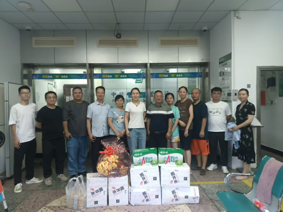 在受災嚴重的湖南株洲炎陵中村郵政支局和戰高溫、斗酷暑的龍溪黃桃收寄點,工會慰問組為防汛救災一線郵政職工送上了涼茶、牛奶、八寶粥、礦泉水和西瓜等慰問物資。