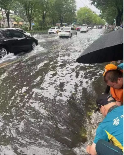 8月16日中午12點(diǎn)30分左右,北京市區(qū)突遭區(qū)域性暴雨襲擊,交道口街道張自忠路路段迅速出現(xiàn)大面積積水,車輛和市民的通行安全受到嚴(yán)重威脅。在這緊急關(guān)頭,西城區(qū)張自忠路營(yíng)業(yè)部經(jīng)理王洪生帶領(lǐng)班組成員郭新、郭曉東、潘飛飛挺身而出。