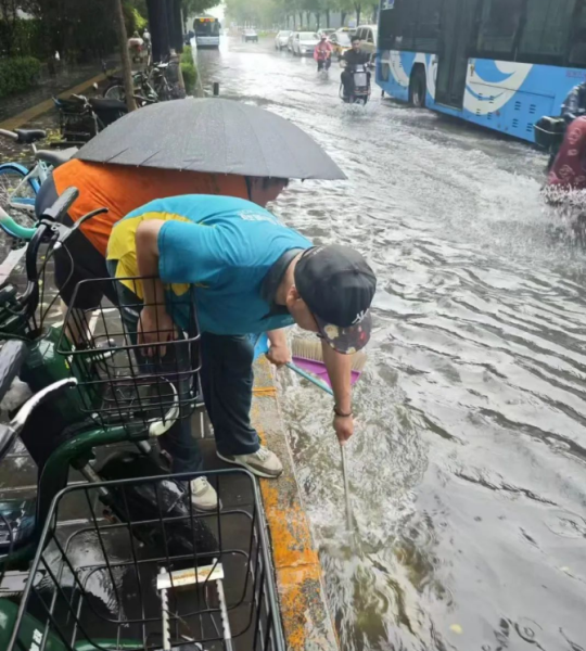 他們冒雨奮力搶險(xiǎn),沉著冷靜地指揮市民有序通過(guò)積水點(diǎn),并對(duì)重點(diǎn)積水區(qū)域進(jìn)行全面排查 。