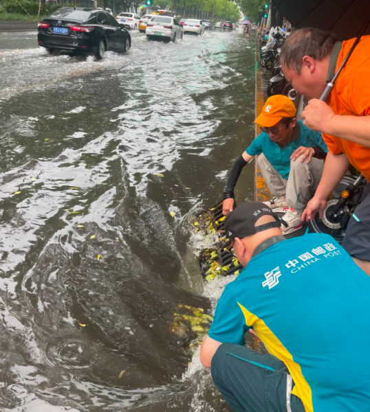 王洪生表示:“只要路上有積水,影響了行車安全,我們郵政班組成員就會(huì)立即行動(dòng),確保市民能夠安全順暢地出行。”(北京郵政工會(huì))