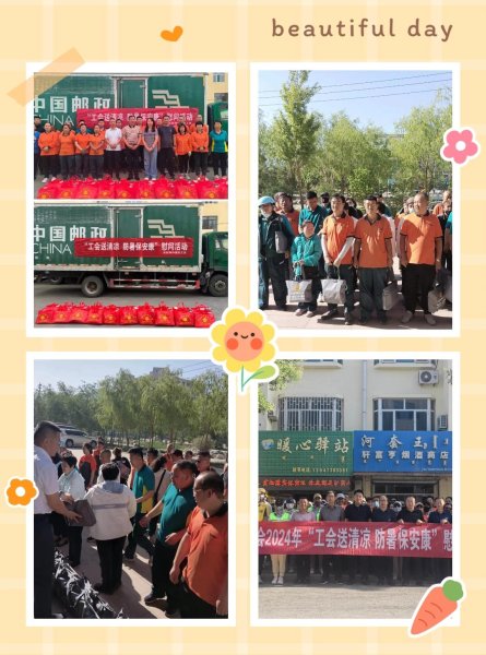 與市分公司行政聯合為全體職工購置綠豆、雪菊、陳皮組合的消暑大禮包。同時,組織各旗縣工會迅速行動開展慰問活動,并與地方總工會積極聯系,共同為奮戰在高溫酷暑一線的快遞人員送去礦泉水、藥品等防暑降溫用品。