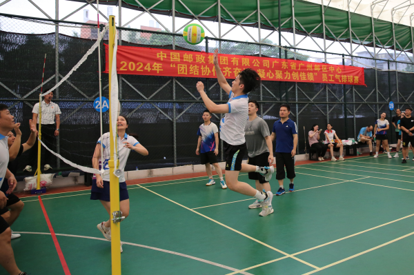 8月15日上午,盡管夏日炎炎,熱浪滾滾,但酷熱并未能阻擋廣州郵區中心員工的熱情與活力。賽場上,身著不同顏色隊服的參賽選手們斗志昂揚、奮力拼搏。每一次精準的傳球,每一次有力的扣殺,每一次默契的配合,都引得在場觀眾熱烈喝彩。整個賽場人聲鼎沸,歡呼聲、助威聲、吶喊聲,此起彼伏。
