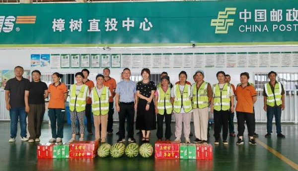 市分公司黨委委員、紀委書記、副總經理劉穎蕾來到高安市分公司楊圩、?灰埠、東門營業所和攬投普服組,樟樹共配中心和臨江營業所,為網點員工和攬投人員送上了王老吉、西瓜、飲料等防暑降溫物品,對投遞員的辛勤付出表示了感謝,親切詢問一線員工的身體、工作和生活情況,叮囑大家要合理地安排好作息時間,做好防暑降溫等防護措施。