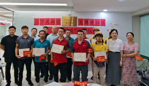 8月22日,由北下關街道辦與大慧寺社區聯合主辦,海淀區分公司魏公村支局大慧寺路支行承辦的“小哥觀察員”受聘儀式在大慧寺路支行圓滿舉行。此次活動旨在通過創新服務模式,構建更加和諧、安全的社區環境?;顒邮紫冉榻B了“小哥觀察員”工作方案的核心內容,該方案充分利用快遞、外賣小哥穿梭于城市大街小巷的獨特優勢,組建了一支由他們構成的“小哥觀察員”隊伍。 通過在各社區建立微信群,這些觀察員將深度融入社區治理,積極參與平安建設、文明創建、公益服務、應急處置及義務宣傳等工作,成為連接社區與居民的橋梁,及時反映社區內的衛生問題、安全隱患等,為社區治理貢獻“新”力量。