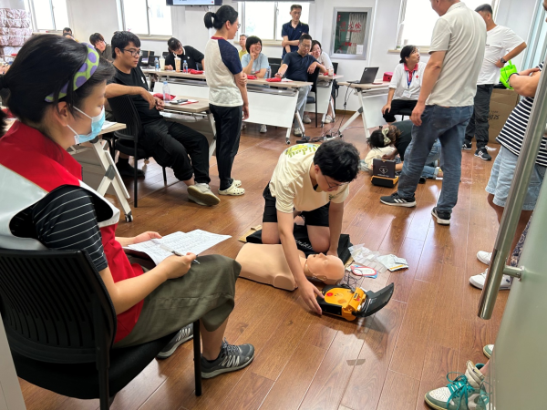 培訓內容包括心肺復蘇術、AED的使用、海姆立克急救法等實用技能。紅十字會的培訓老師利用假人模型,向參訓人員講解示范如何進行心肺復蘇、海姆立克急救,詳細講解了判斷標準、錯誤操作和注意事項等,并補充介紹了不同被救助人群如嬰兒、兒童和成人的異同點,幫助職工深入了解較為常見急救情況的應對要領。實操環節中,培訓老師引導職工參與互動學習,及時點撥誤區,糾正錯誤操作。