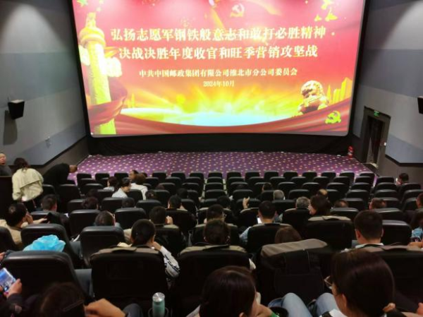 10月18日晚,淮北郵政組織員工集中開展觀影活動,市分公司近百名員工在永利橫店影院集體觀看《志愿軍:存亡之戰》。